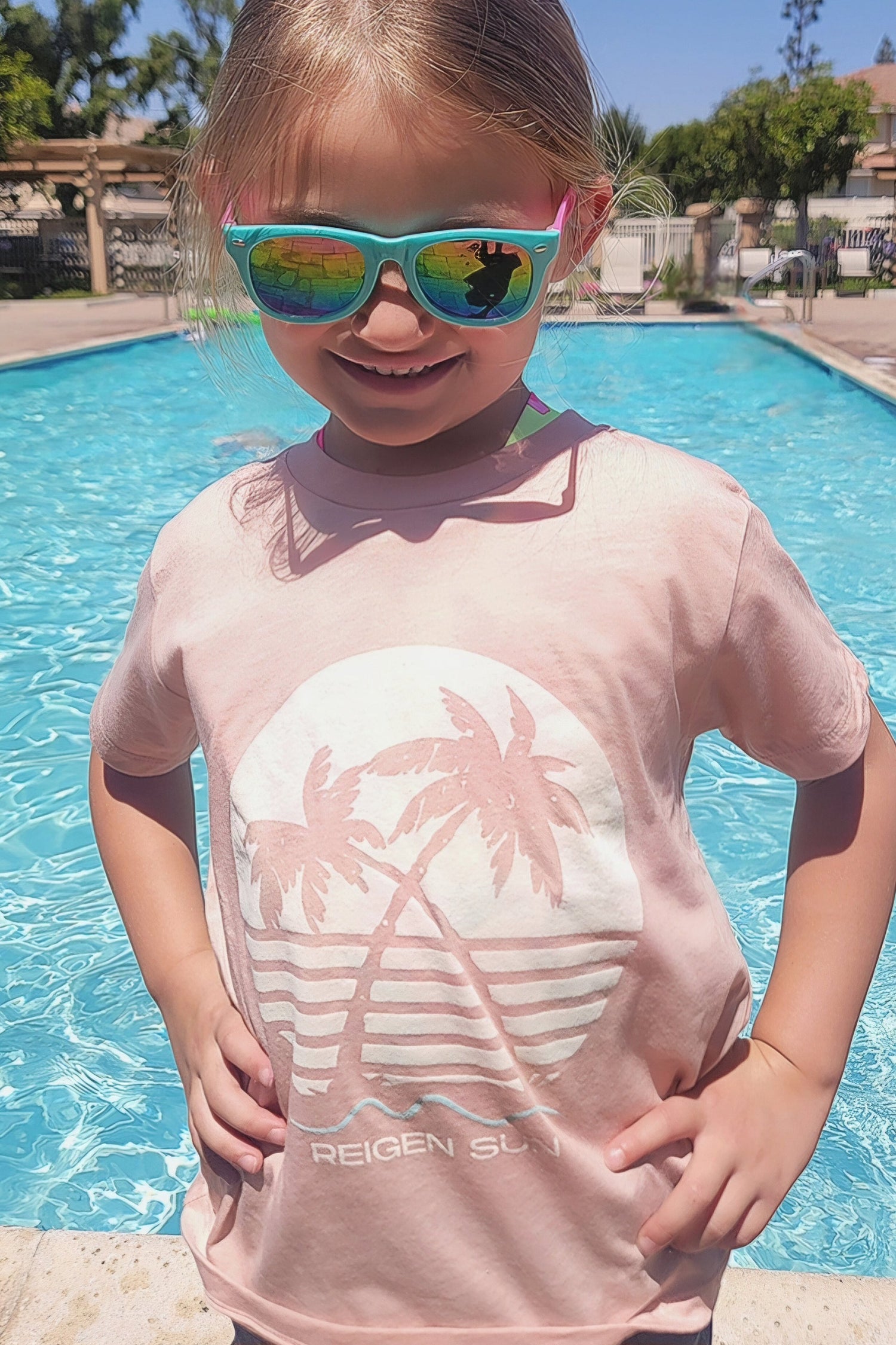 KIDS SUNSET PALMS TEE- PEACHY // CREAM